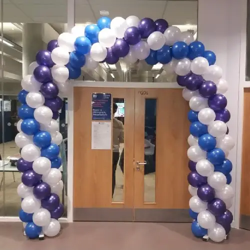 Professional balloon decoration services for company events, enhancing brand presence with elegant arches, columns, and customized designs for impactful experiences.