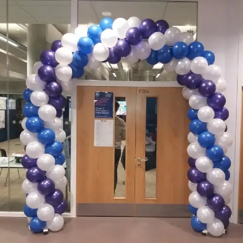 Professional balloon decoration services for company events, enhancing brand presence with elegant arches, columns, and customized designs for impactful experiences.