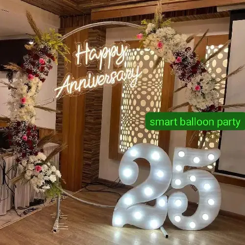 Elegant wedding anniversary balloon decoration services creating romantic arches, backdrops, and personalized designs to celebrate love and lasting memories together.